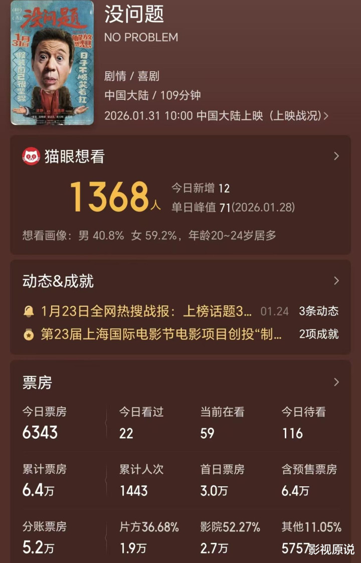 预计最终票房不会达到8万人民币,《没问题》暂时将会成为年度最惨电影。